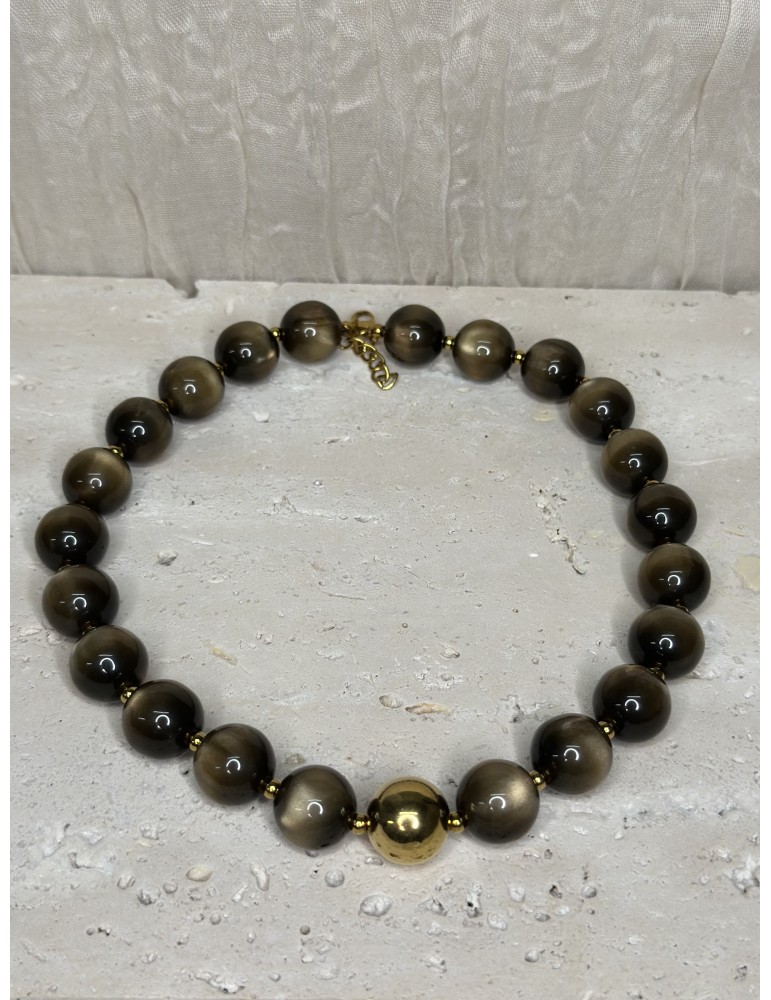 • Perle marron chromé