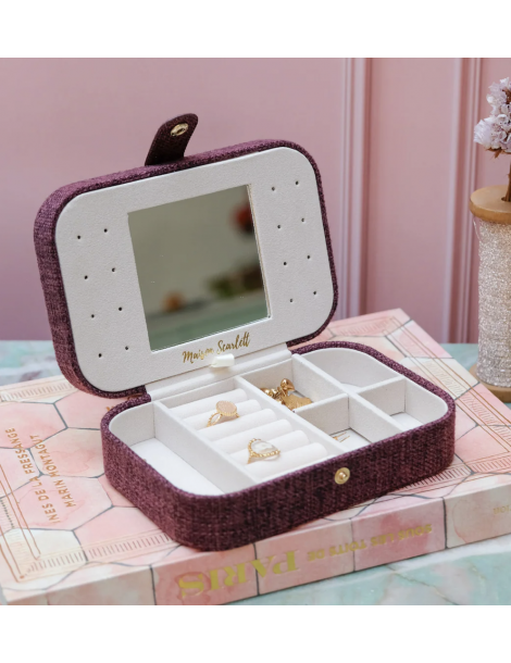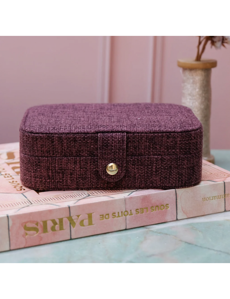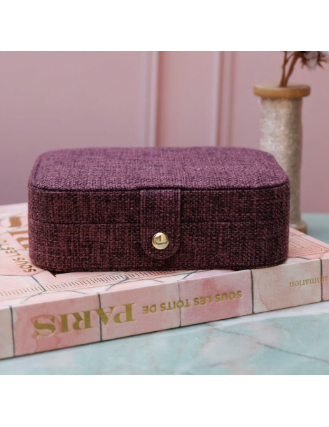 Boîte à bijoux de voyage Brigitte en lin bordeaux :