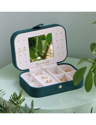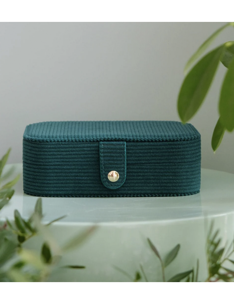 Boîte à bijoux de voyage Brigitte en velours côtelé vert :